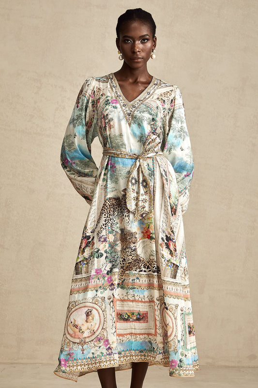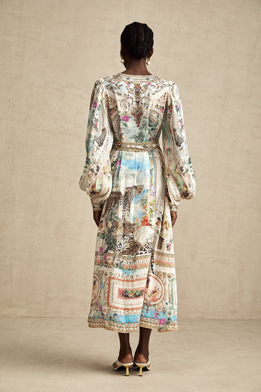 Léna belted V-neck midi dress