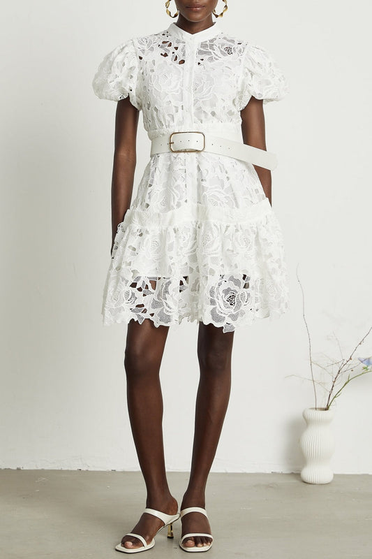 Calista Lace-embroidered Belted Mini Dress