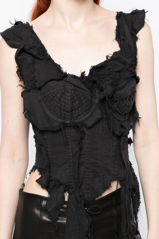 Noela Asymmetric Fringed Corset - Black