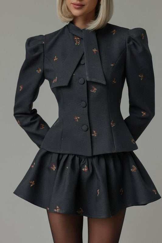 Lillie Spaghetti Floral Ruffle Mini Dress - Black