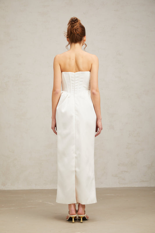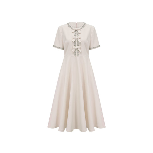Cassiopeia crystal-accented bow midi dress in White