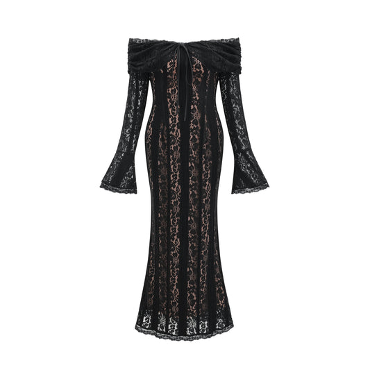 Coralie black floral-lace halterneck maxi dress