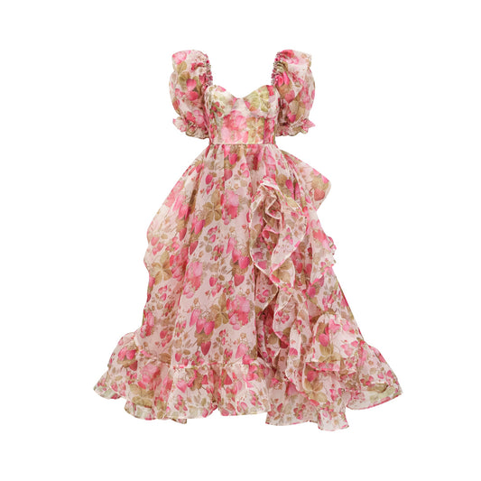 Geneviève fruit-print ruffled maxi dress