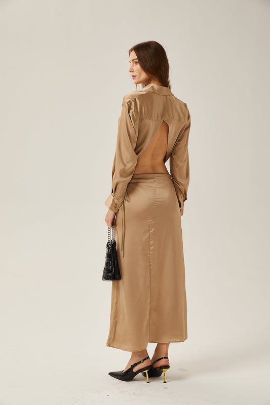 Penelope gold satin blouse & skirt matching set