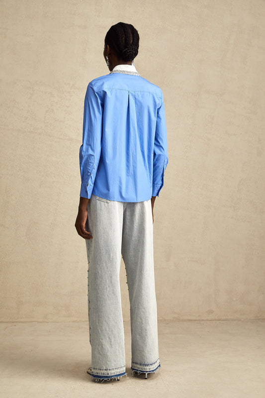 Flavie blue rhinestone-embellished denim shirt
