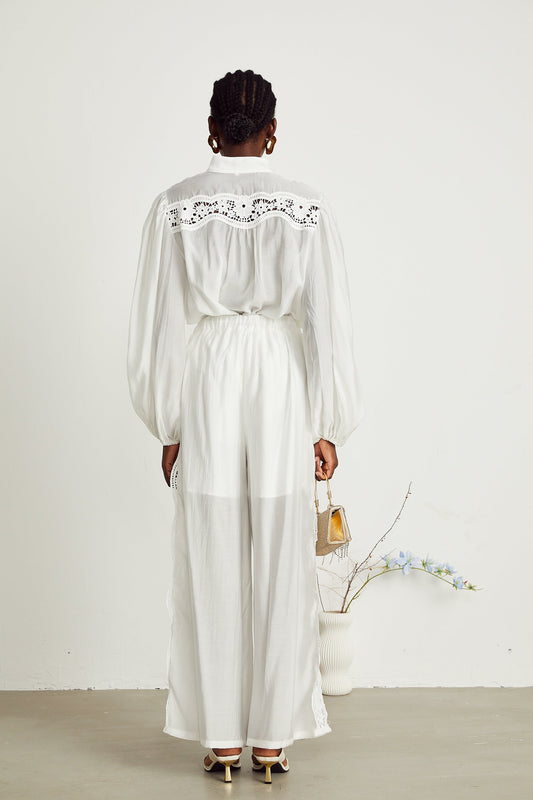 Yasmine semi-sheer shirt & trousers matching set