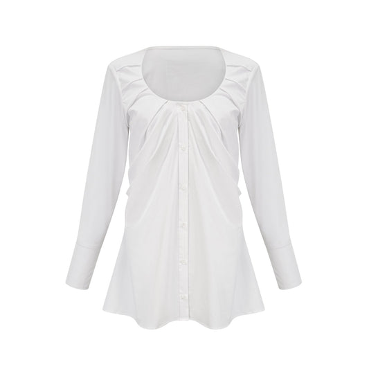 Daphné white ribbon ruched mini shirt dress