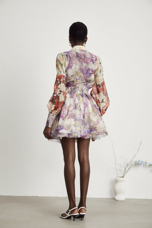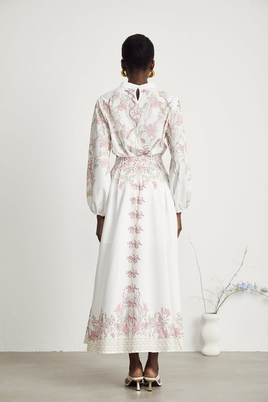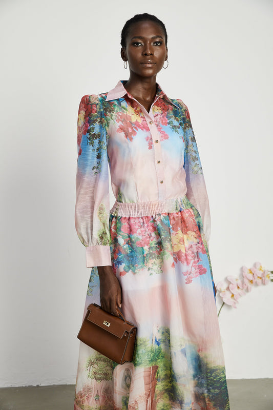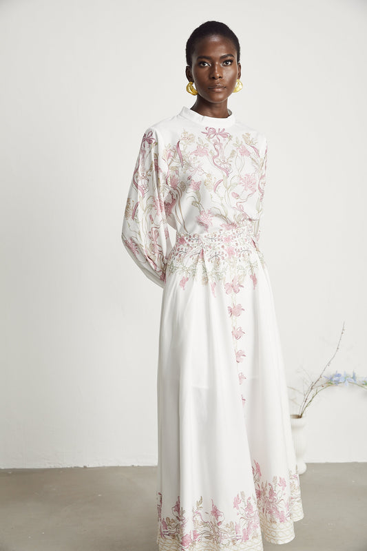 Maïa coral-pink floral-print pleated blouse & dress matching set