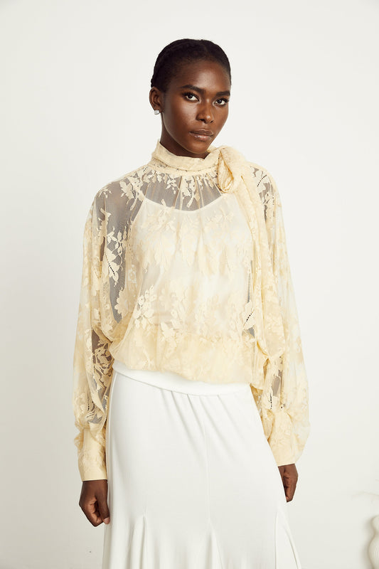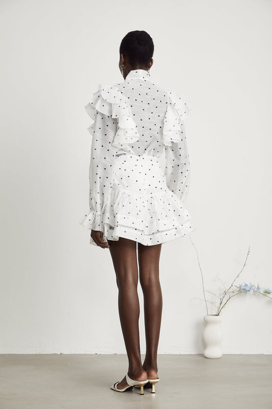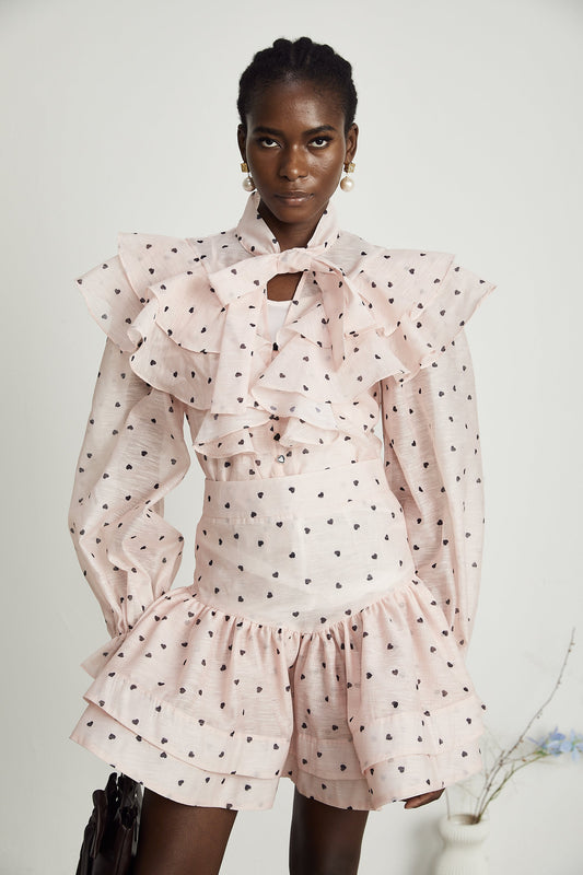 Zelda haze-blue bowknot ruffled blouse & skirt matching set
