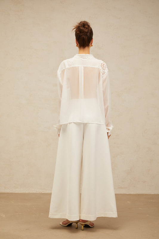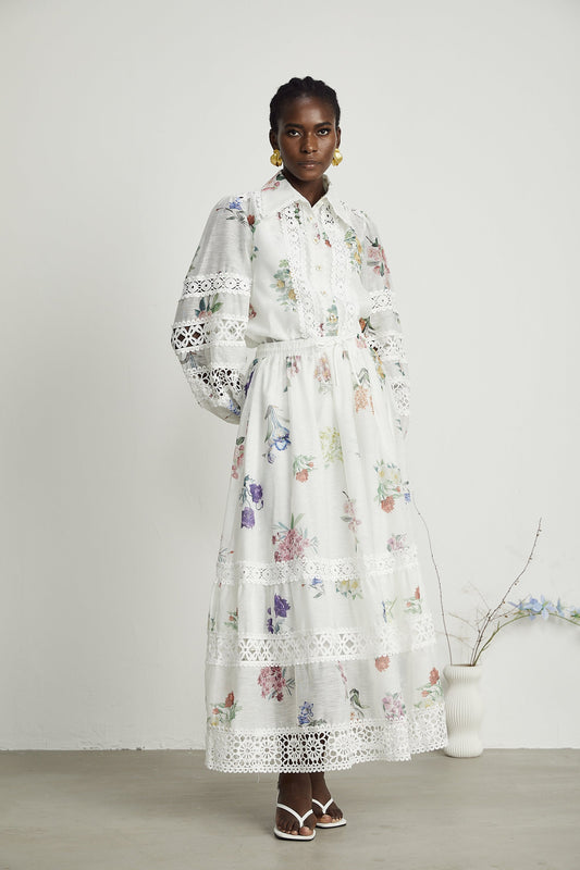 Zazie salmon-pink lace-trim shirt & skirt matching set