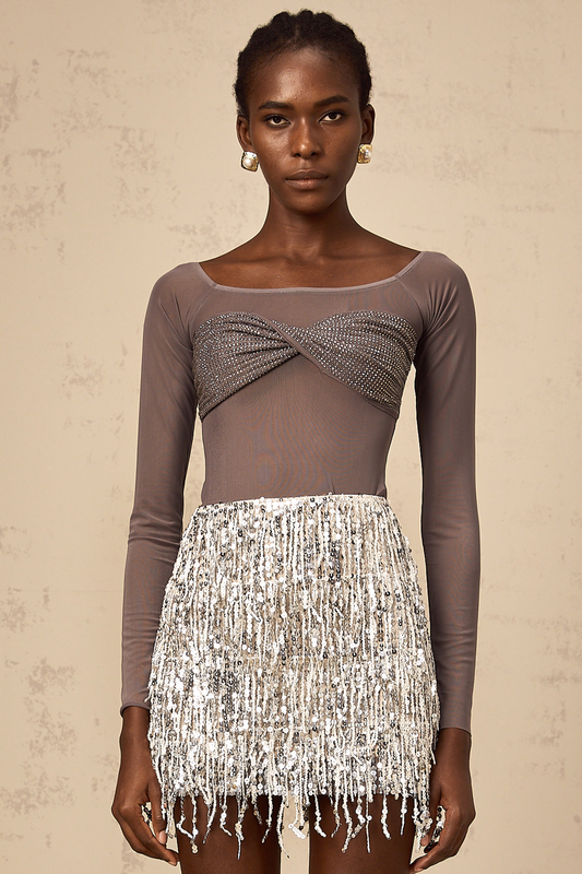 Katell oatmeal draped-detail stretched top & skirt matching set