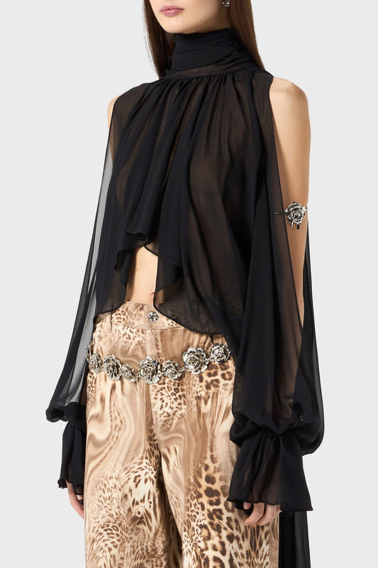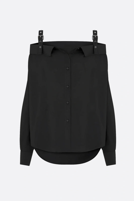 Charlize Off Shoulder Buckle Shirt - Black
