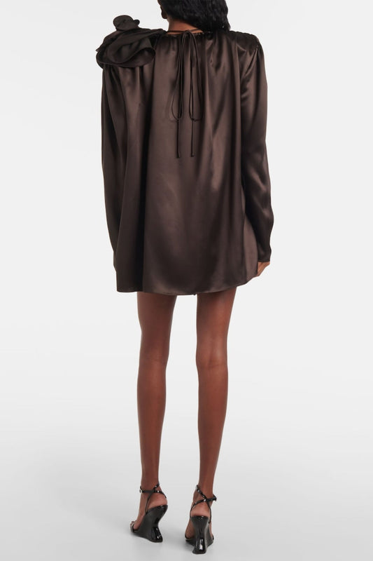Daiki Satin Flower Appliqué Blouse