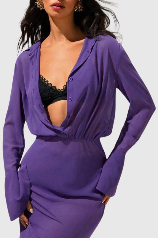 Agathe purple gradient wrinkled blouse & trousers matching set