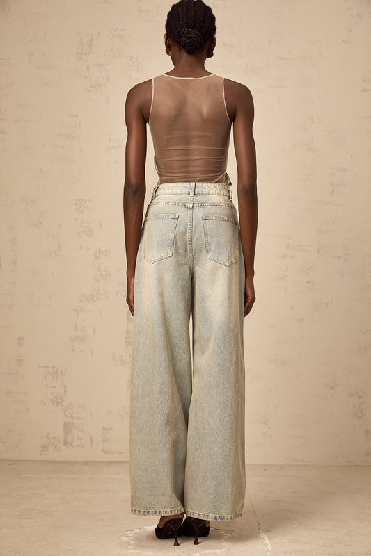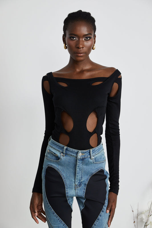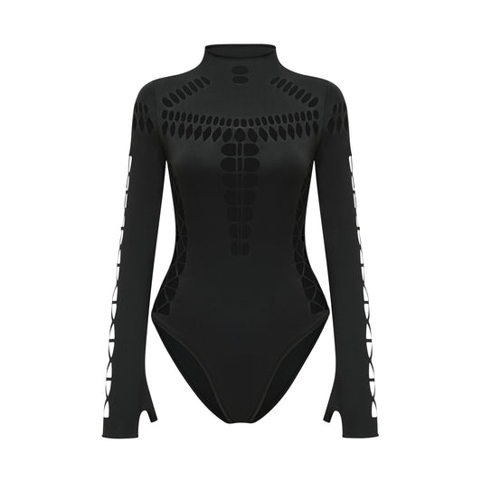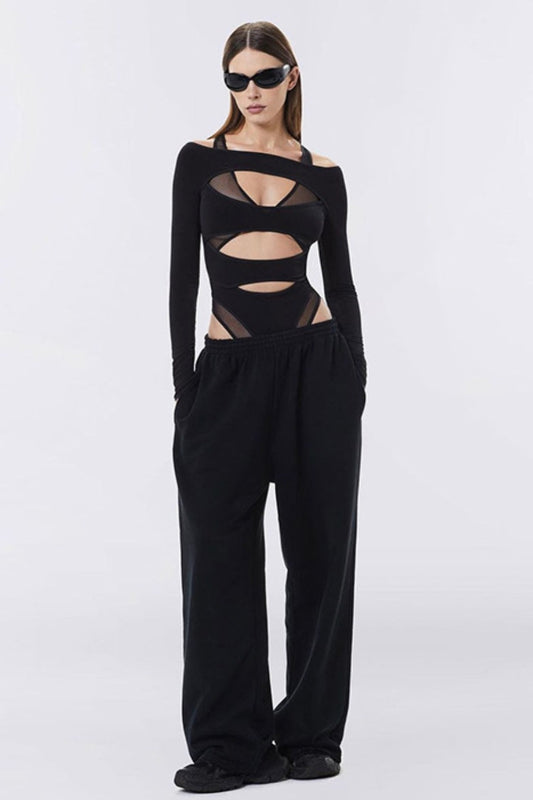 Jazlya Asymmetric Mesh Ruched Bodysuit