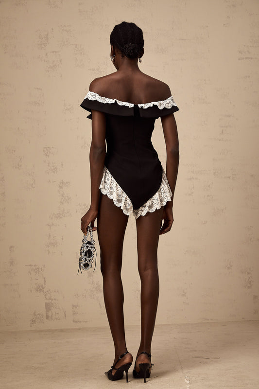 Yara Off Shoulder Crystal Bodysuit - Brown