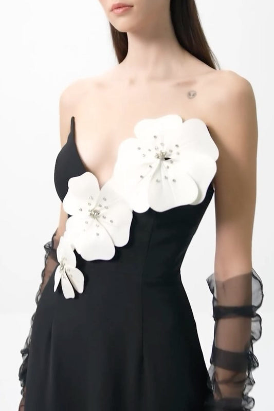 Lyra Floral Embellished Mini Bandage Dress - Black