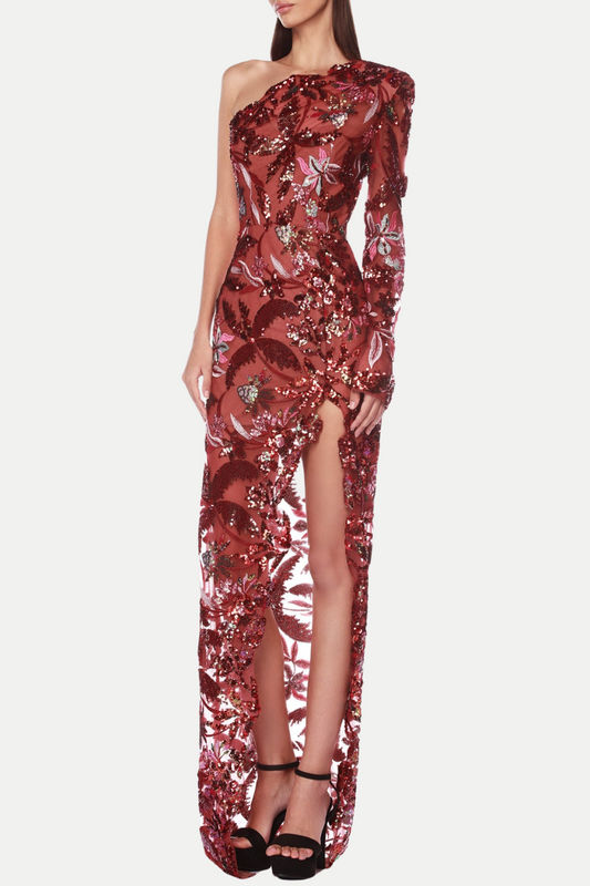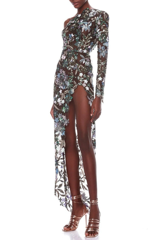 Thirza Floral Sequin One Shoulder Maxi Dress