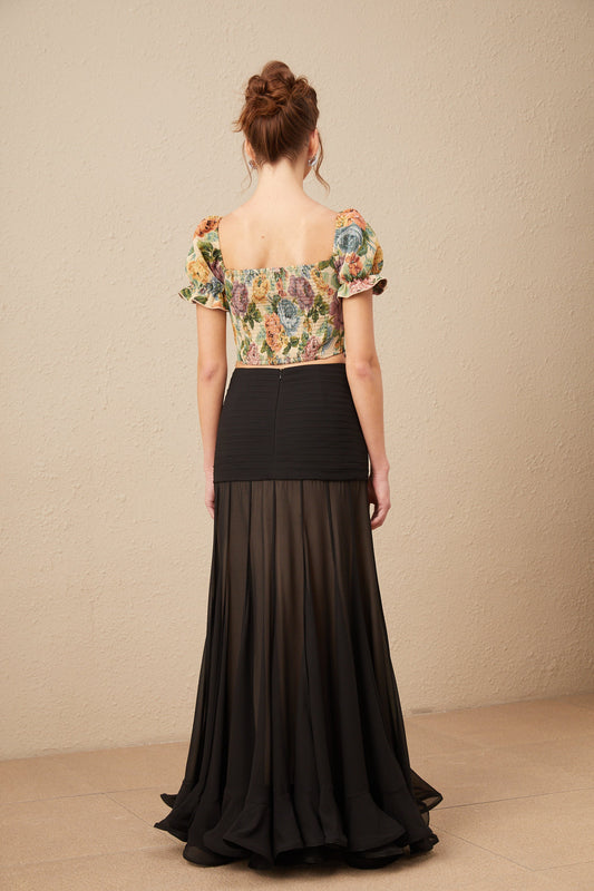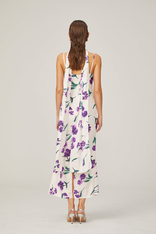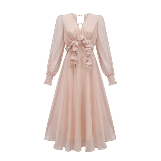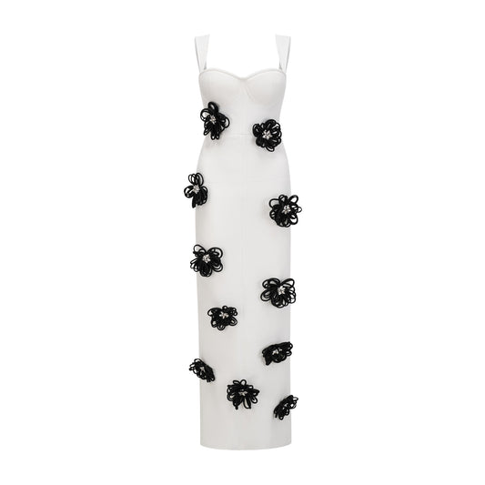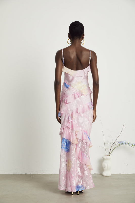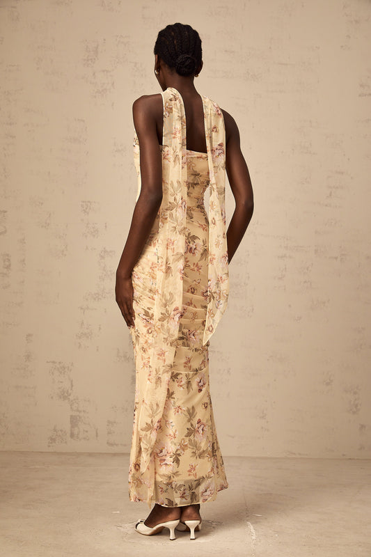 Lilou neutrals ribbon panelled floral-lace maxi dress