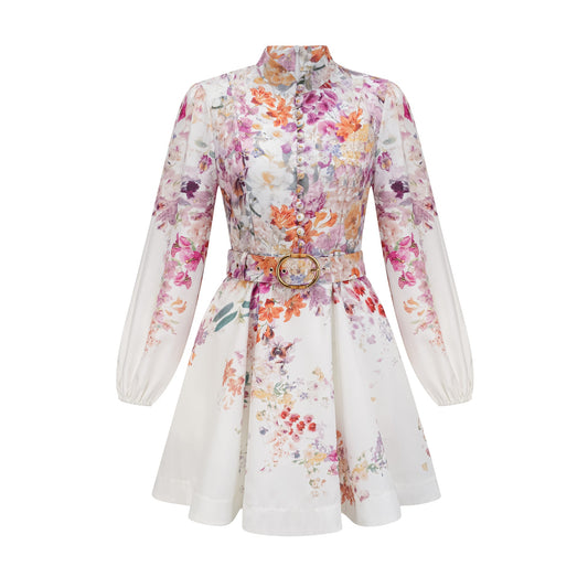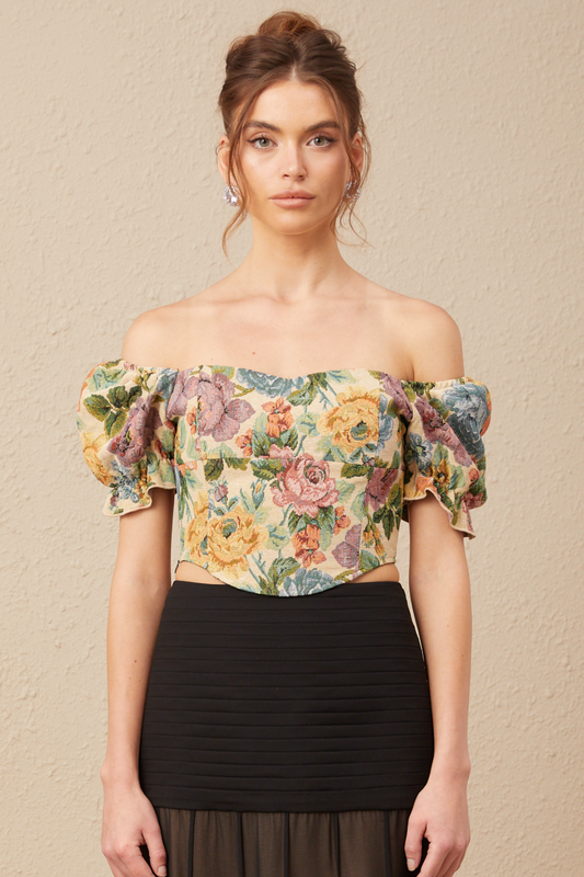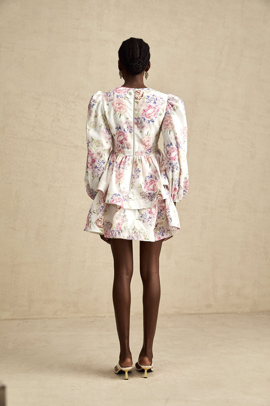Eugénie blue lace-trim floral-print ruffled jumpsuit