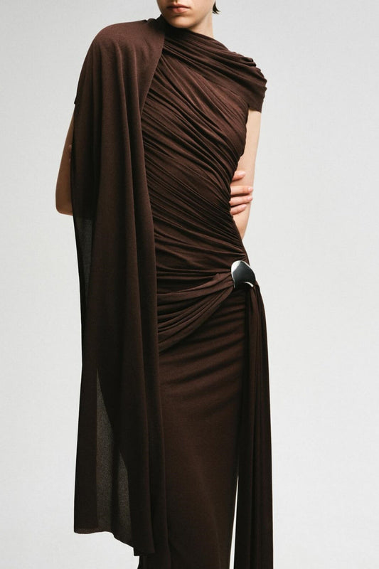 Nashira One Shoulder Asymmetric Ruched Maxi Dress