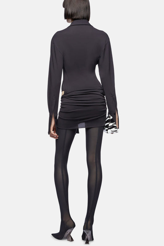 Adamar Asymmetric Buckle Ruched Mini Shirt Dress