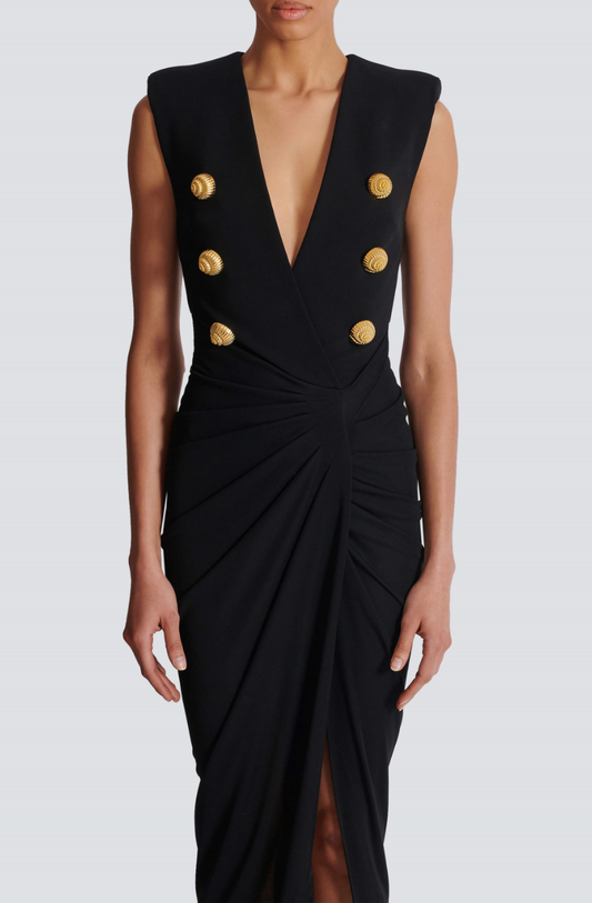 Sedzi Deep-V Sleeveless Ruched Slit Maxi Dress