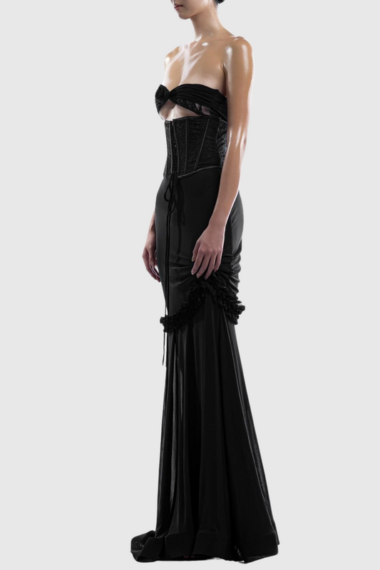 Laythan Mesh Cutout Corset Maxi Dress - Black