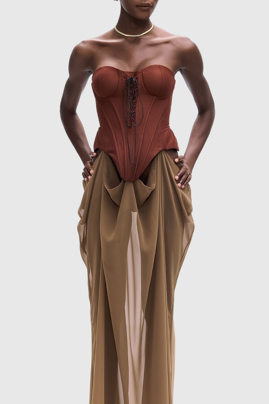 Tizoc Strapless Corset Lace Up Maxi Dress