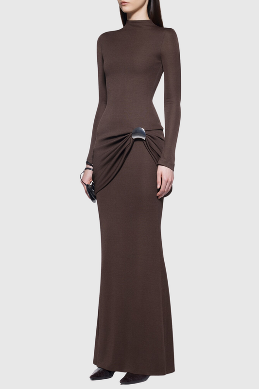Fiada Draped Long Sleeve Maxi Dress - Brown