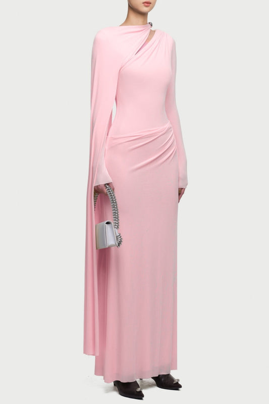 Jalynne Diagonal Shawl Cutout Maxi Dress - Pink
