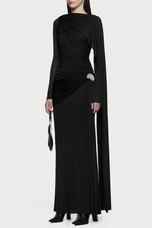 Fiada Draped Long Sleeve Maxi Dress - Black