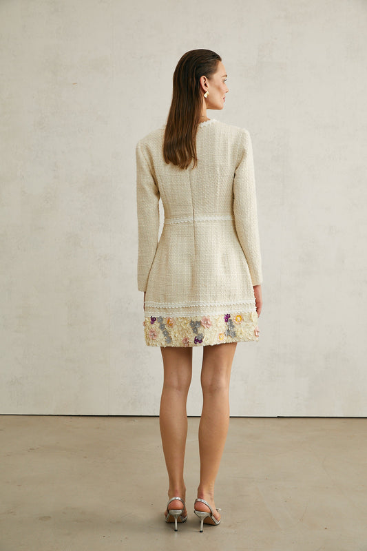 Elisabeth A-line sleeveless beaded tweed mini dress in Whỉte