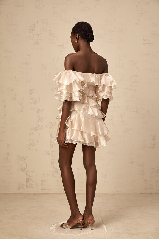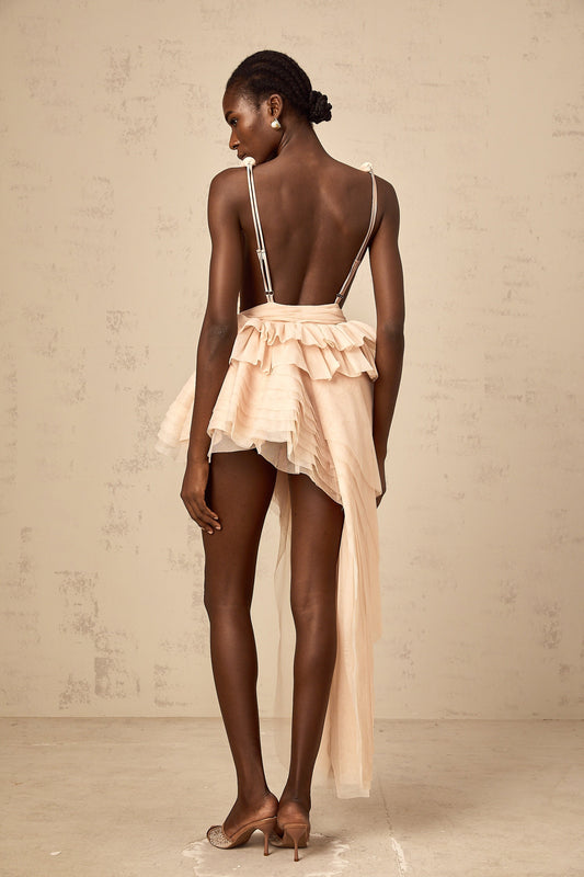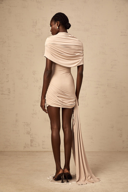 Gaëlle neutrals cape-design ruched fitted mini dress