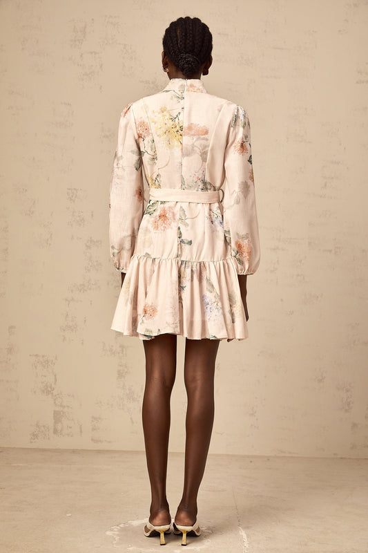 Gabrielle neutrals bowknot floral-lace-penal mini dress