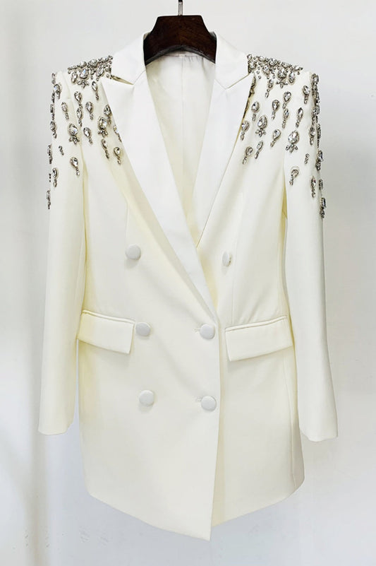 Scarlett Crystal Embellished Cutout Blazer Dress - White