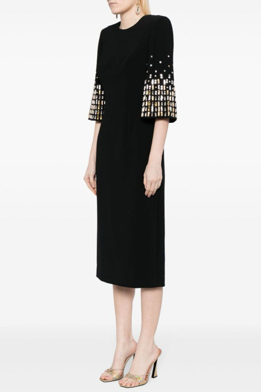 Hilaria Rose Handcrafted Knit Midi Dress - Black