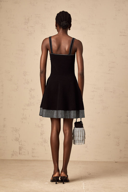 Éliane black studded flared knit mini dress