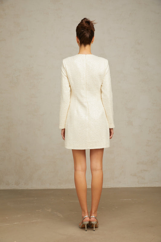 Angélique white sequined tweed mini dress