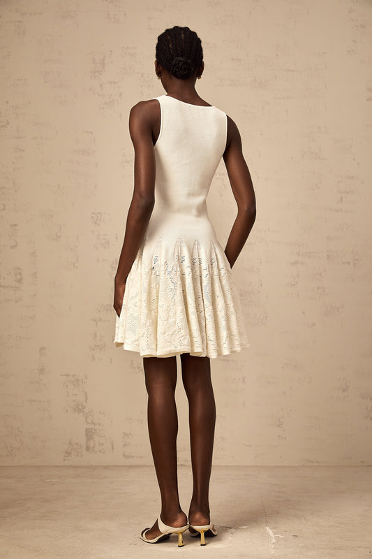 Éléonore white jacquard knit mini dress