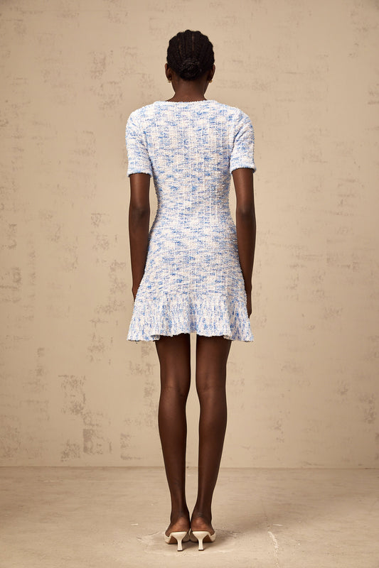 Éloïse blue checked knit mini dress