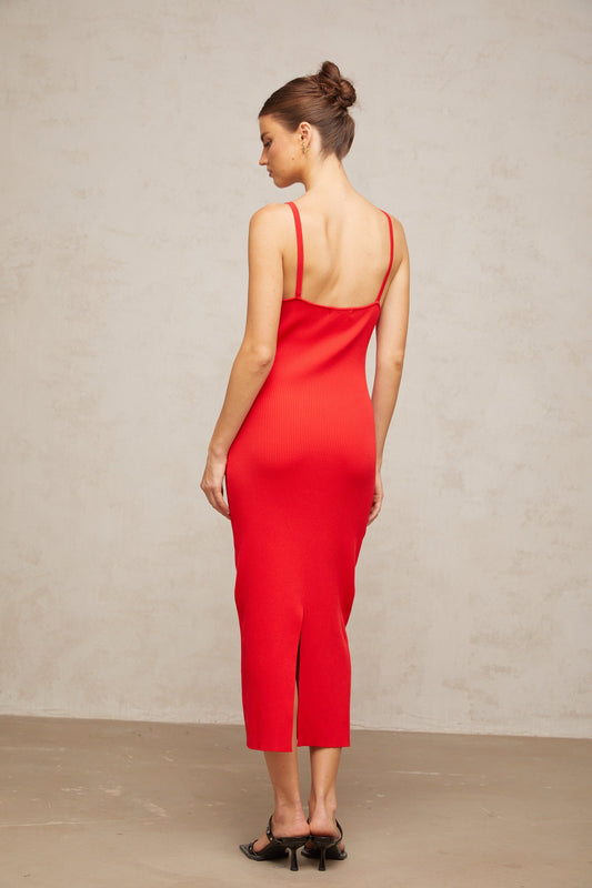 Prunelle red pin-detail knitted midi dress