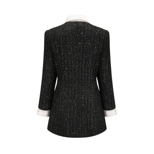 Audrey black sequin panelled tweed mini dress
