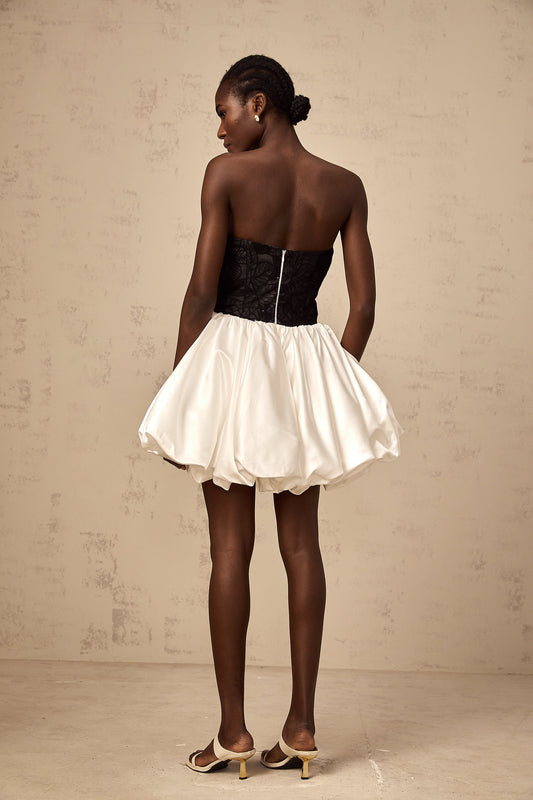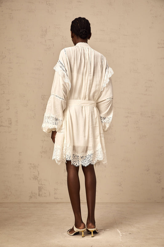 Éliane white lace-panelling puff satin mini dress