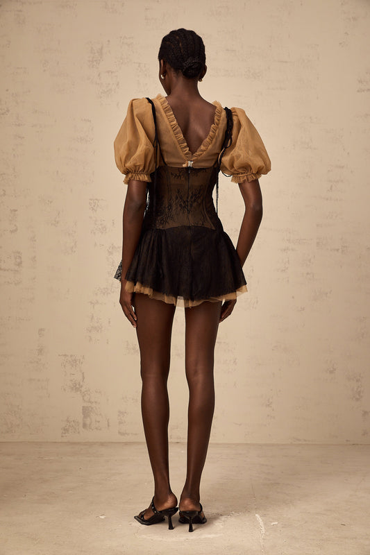 Fabienne black lace-panelling mini dress