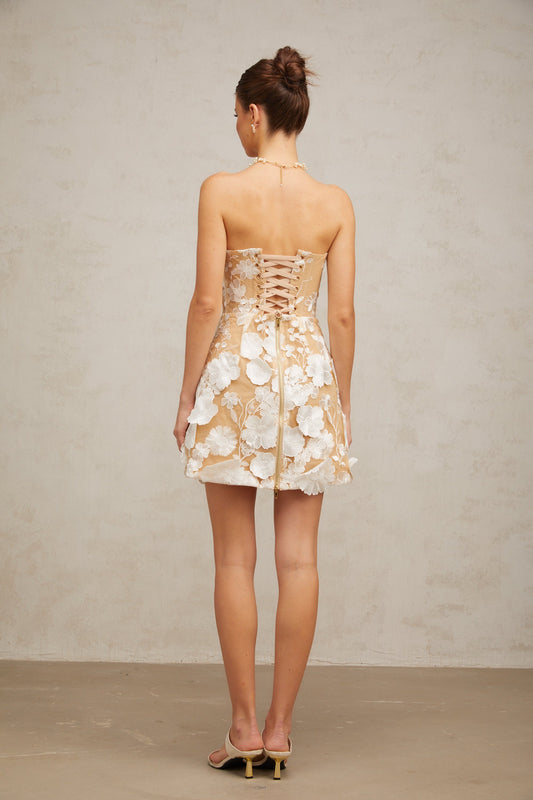 Véronica white flower-appliqué mini dress