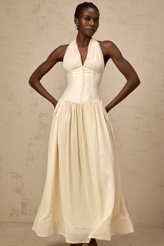 Charlotte halterneck tulle midi dress