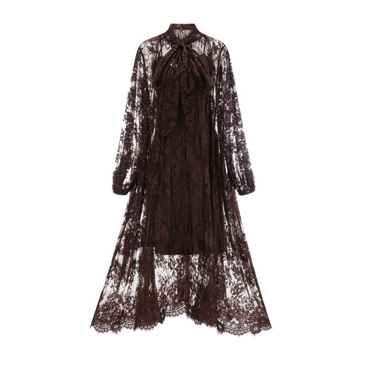Sylvie brown chantilly-lace flared midi dress