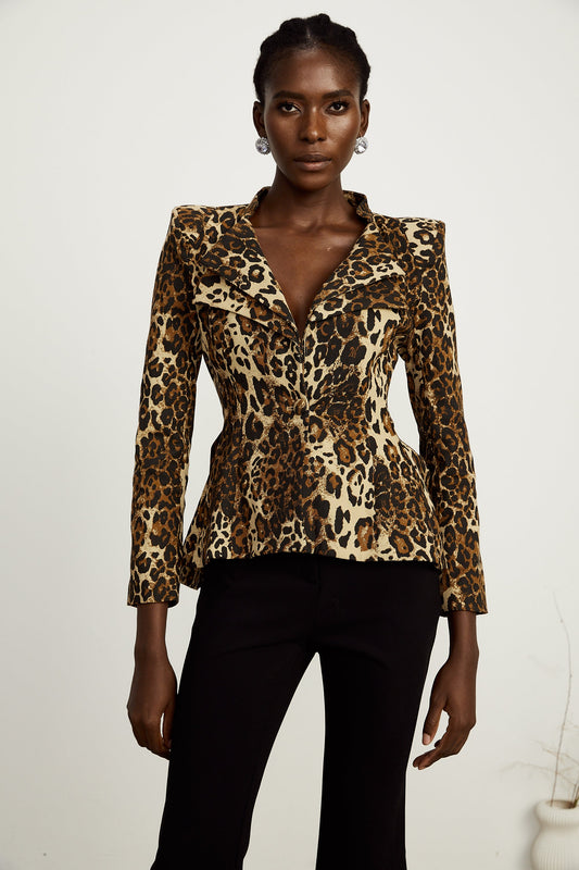 Shmaka Leopard Print Strapless Slit Maxi Dress
