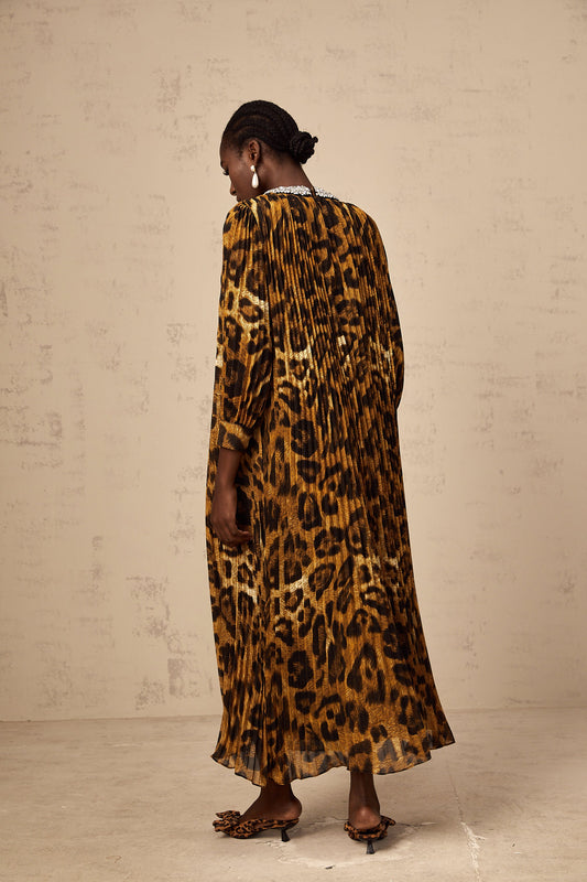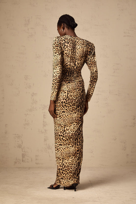 Kaily Floral Leopard Cutout Split Maxi Dress